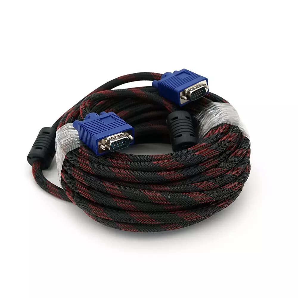 Кабель Merlion VGA 3 + 4, 10m, male to male (тато-тато), OD-8.2mm, 2 ферита, обплетення, круглий Black/Red, коннектор Blue