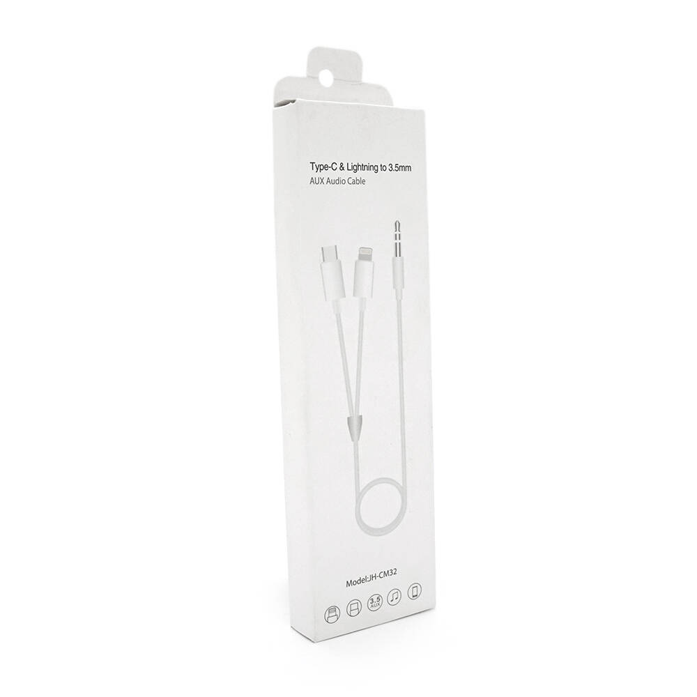 Кабель-перехідник JH-CM32 Jack 3.5mm(M) => Lighting(M)+Type-C(M), 1м, White, Box