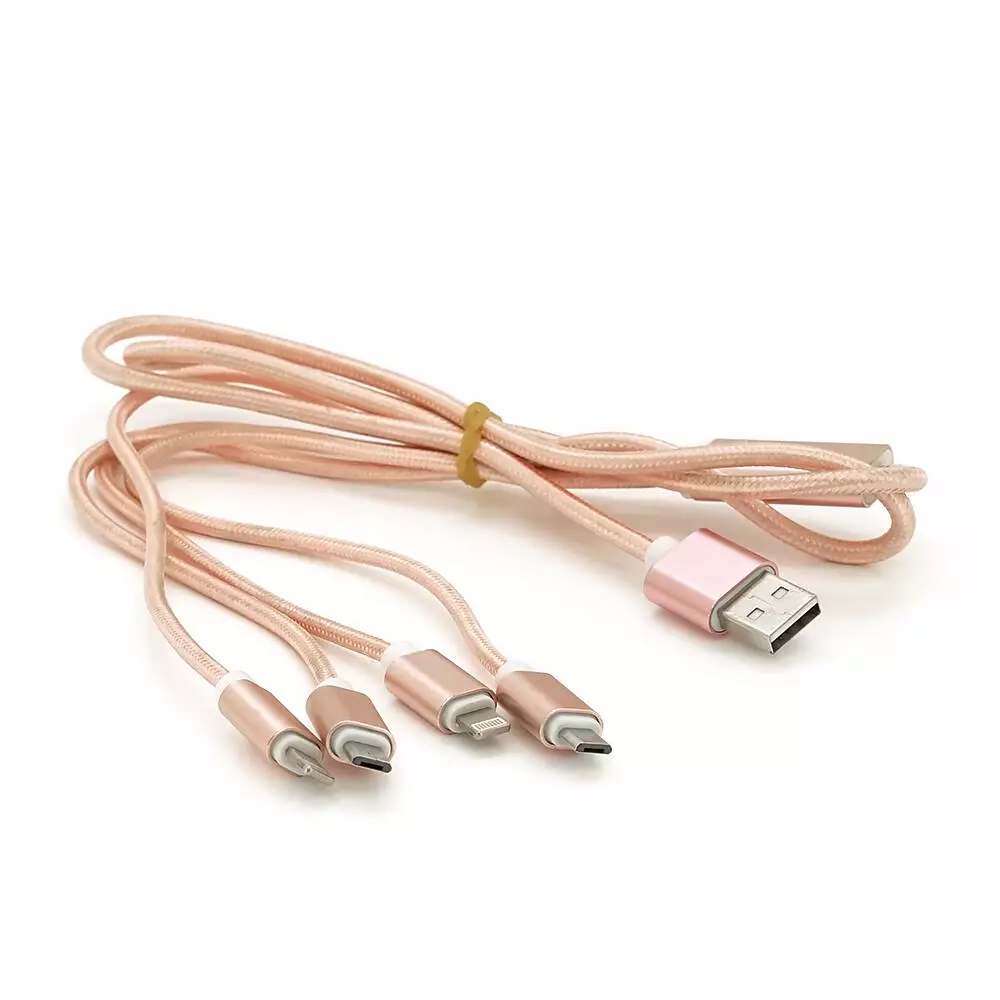 Цей кабель призначений для підключення пристроїв із роз'ємами Lightning (для продуктів Apple, таких як iPhone, iPad, iPod) та microUSB (для широкого спектру пристроїв, включаючи Android-смартфони, планшети та інші периферійні пристрої). Стандарт USB 2.0 забезпечує підтримку передачі даних на відповідній швидкості. Кабель має круглу форму та рожевий колір. Він поставляється в коробці для захисту та зручного зберігання.