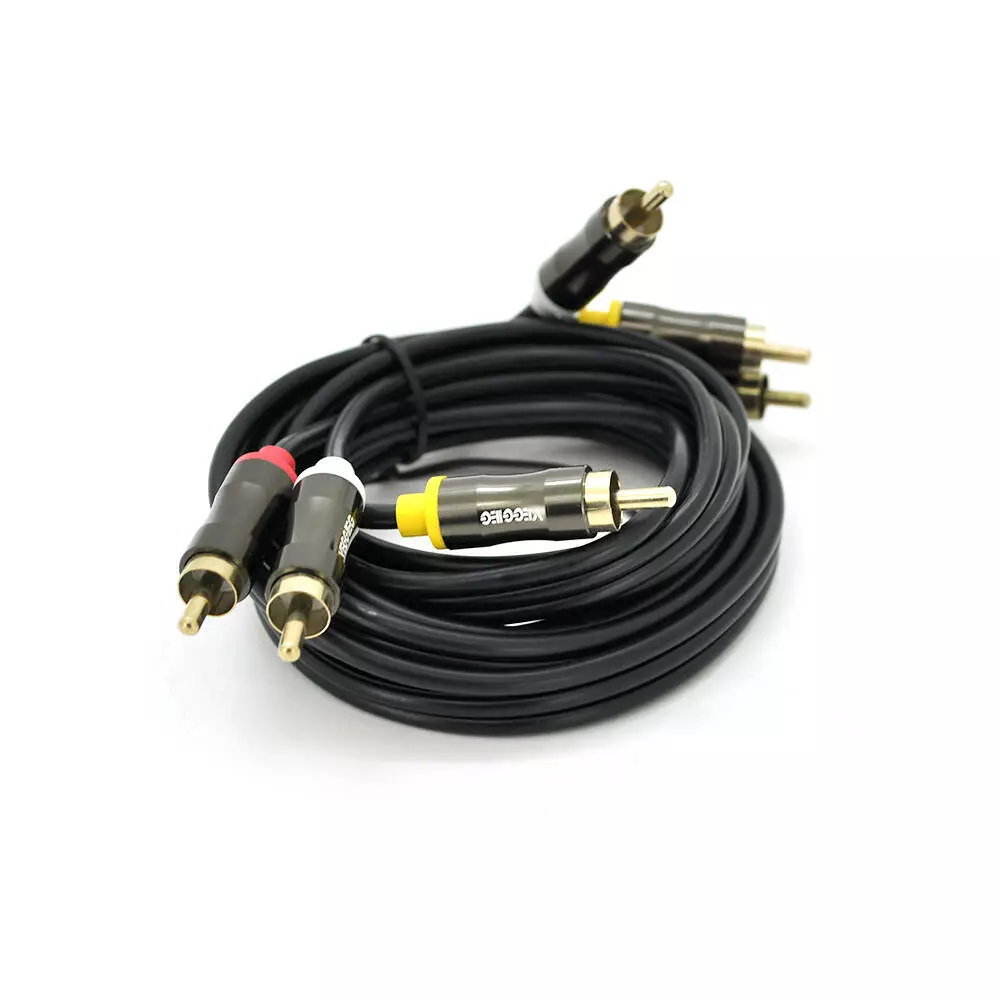 Кабель VEGGIEG AV303 Audio-Video 3хRCA (тато) => 3хRCA (тато), GOLD connector, круглий, Black, 3,0 м, Пакет