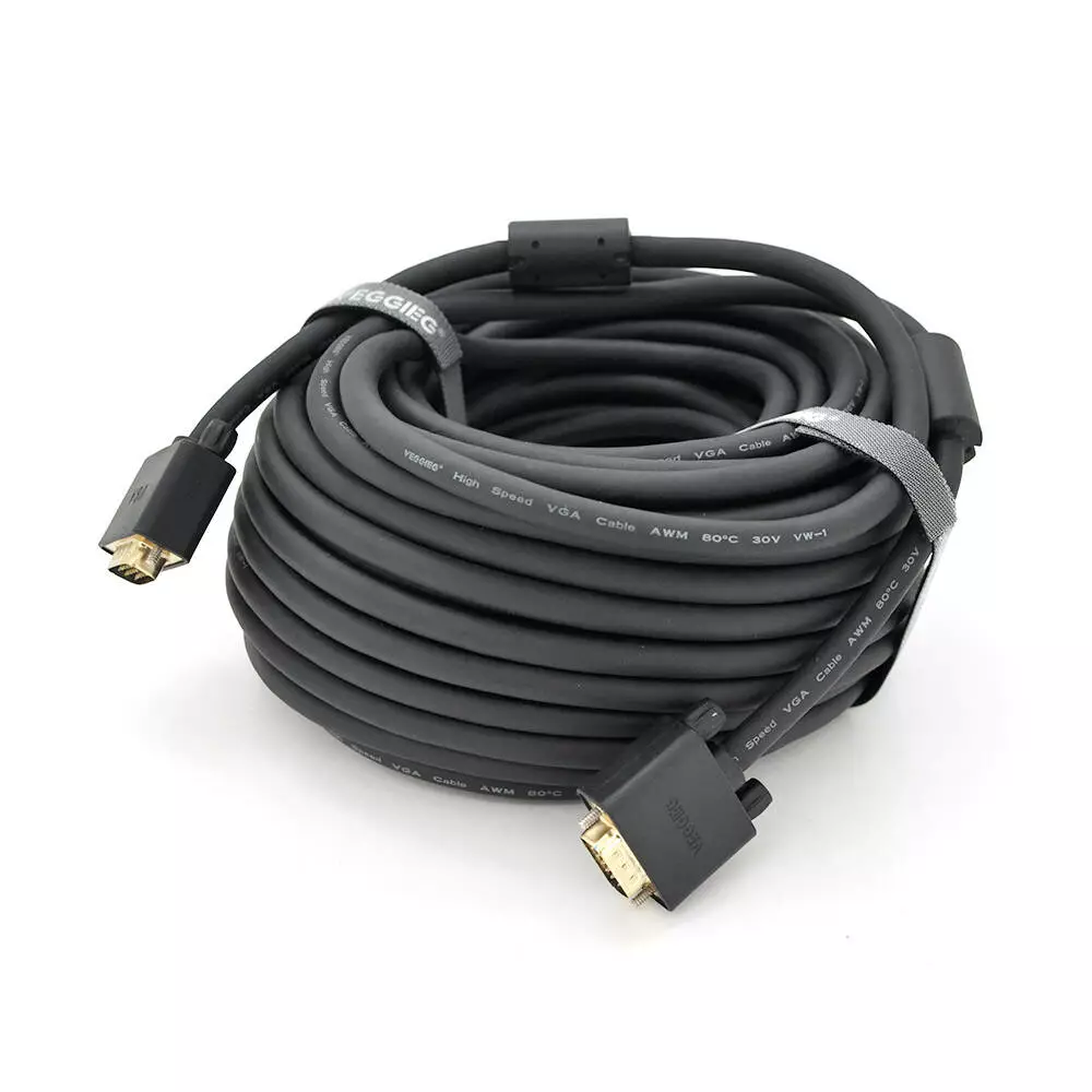 Кабель VEGGIEG VG-20 VGA 3 + 6, 20m, male to male (тато-тато), OD-8.0mm, 2 фериту, круглий Black, коннектор Gold, Box