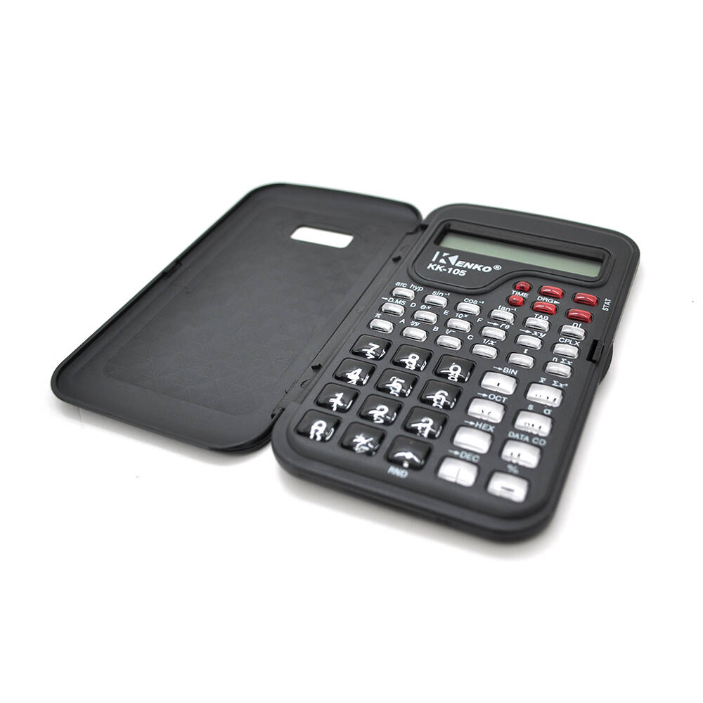 Інженерний калькулятор 105 із 44 кнопками, чорного кольору, розмірами 132*77*13мм, у коробці.