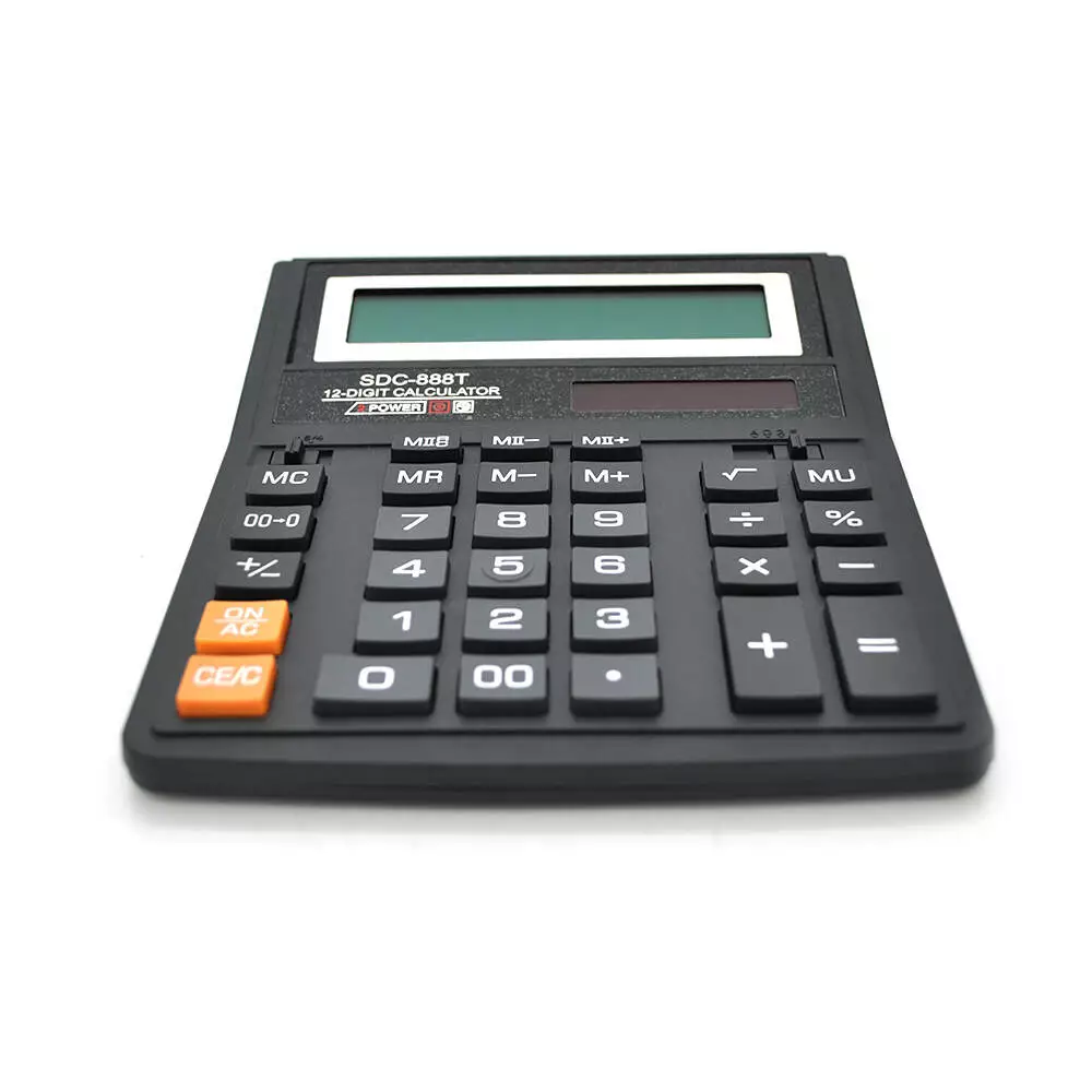 Офісний стандартний калькулятор 888T із 33 кнопками, чорного кольору, в корпусі BOX. Розміри становлять 206*156*31мм.