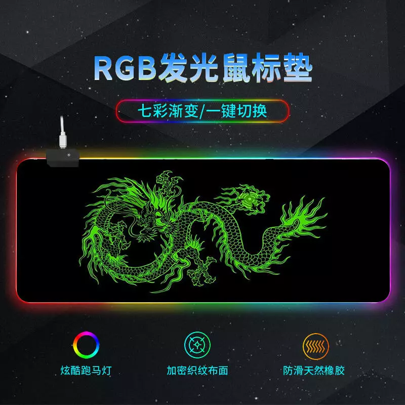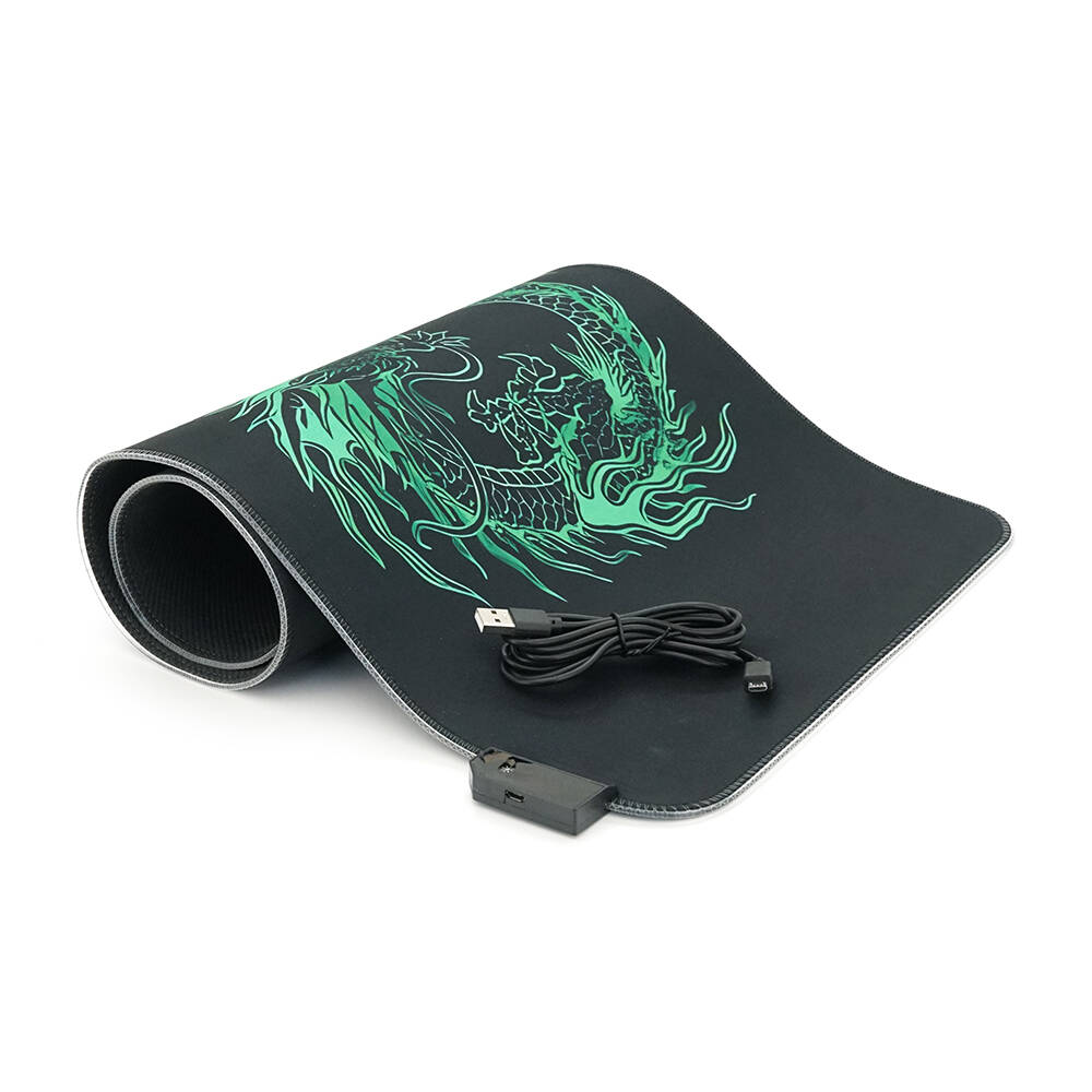 Килимок 300*800 для миші "Green dragon" тканинний з боковою прошивкою, товщина 3 мм, RGB підсвічування, живлення USB 1,8 м, Color Box