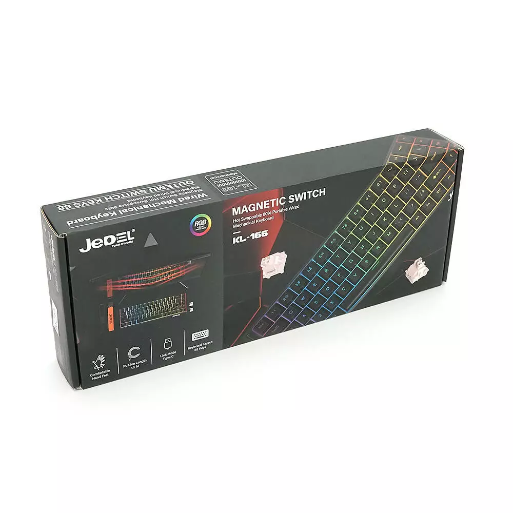 Клавіатура механічна USB JEDEL KL-166, довжина кабелю 170см, RGB підсвічування, (Eng/Укр/Рус), (370х140х55 мм), Black, 68к, Q10