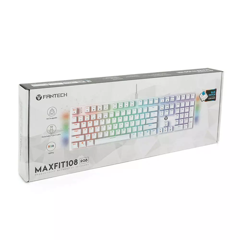 Клавіатура USB Fantech MK855RGB, довжина кабелю 135см, (Eng/Укр/Рус), White, 108к, Q10