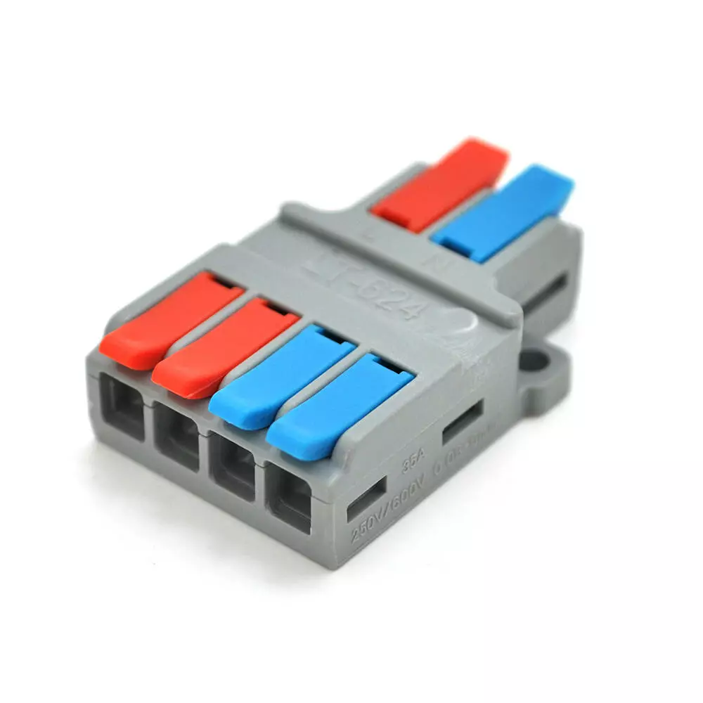 Клемна колодка з натискними затискачами 2х4-дроти LT-624 для розподільних коробок, 450V / 32A, cерая
