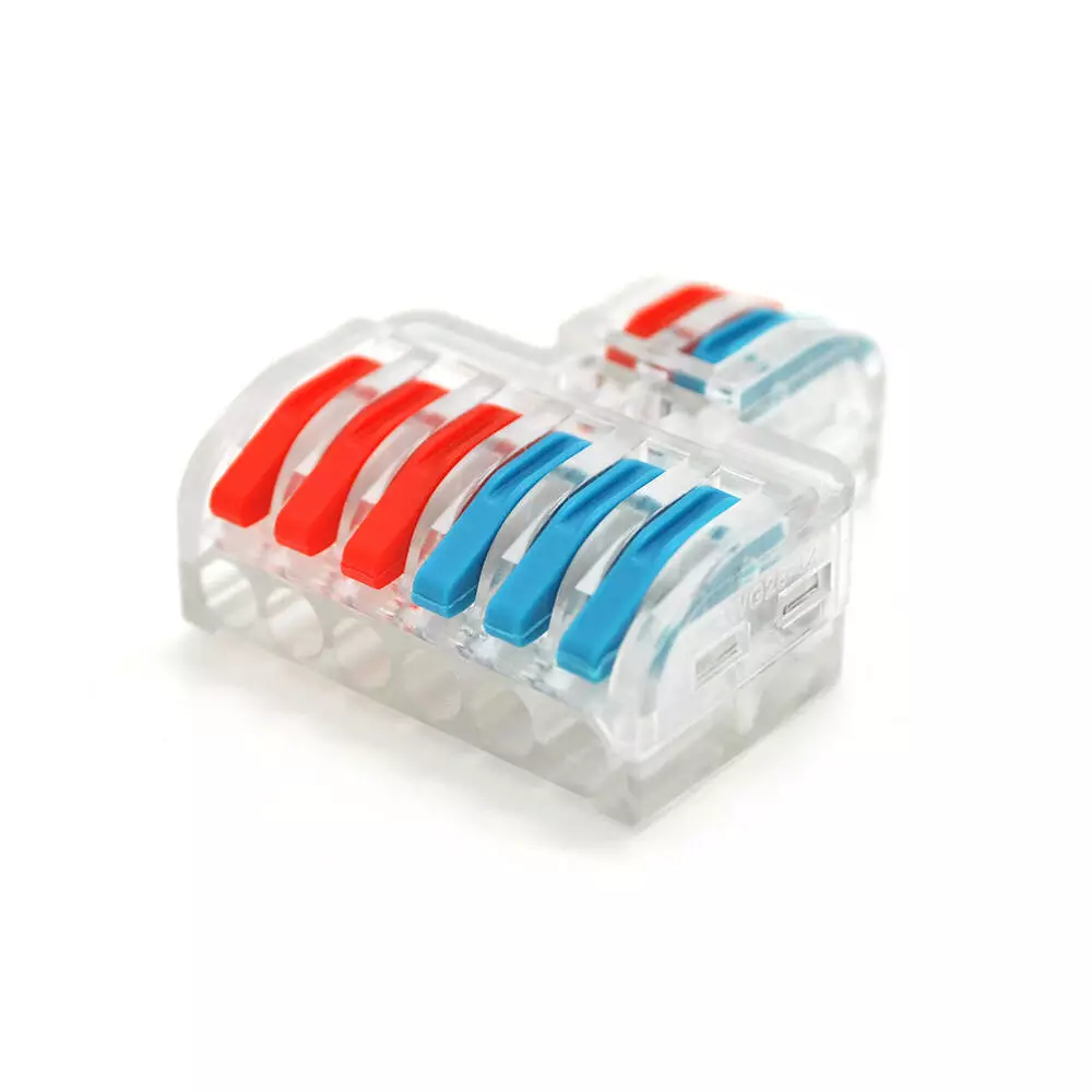 Клемна колодка з натискними затискачами 2х6-дроти LT-623 для розподільних коробок, 450V / 32A, прозора