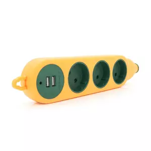 Колодка для подовжувача 3 гнізда + 2USB без заземлення 16A 220V, Orange, Q100