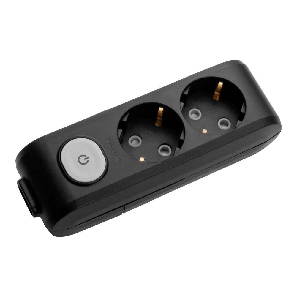 Колодка Panasonic X-tendia із заземленням 2 гнізда, з захистними шторками,з вимикачем чорна