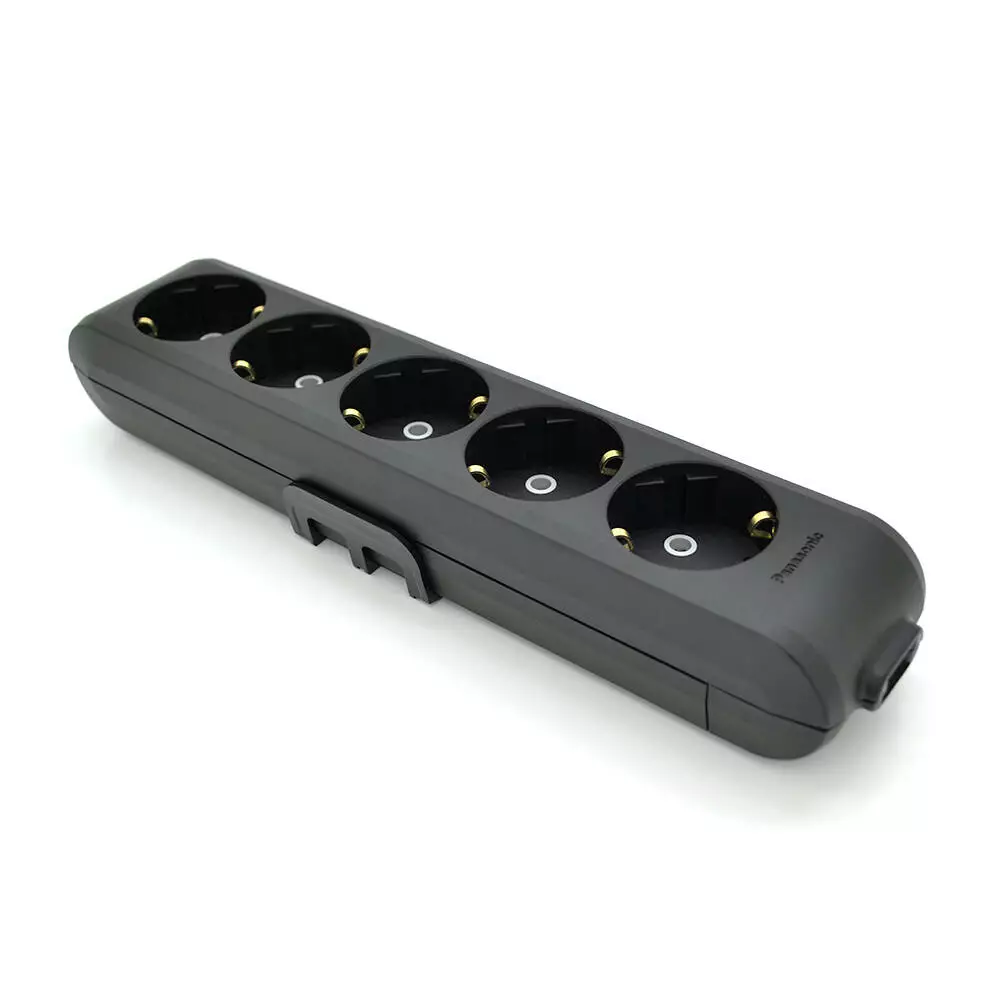 Колодка Panasonic X-tendia із заземленням 5 гнізд, з захистними шторками, чорна