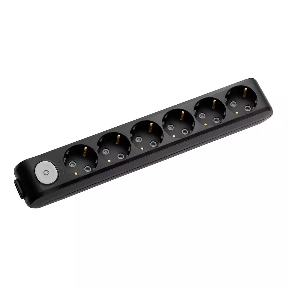 Колодка Panasonic X-tendia із заземленням 6 гнізд, з захистними шторками, з вимикачем, чорна