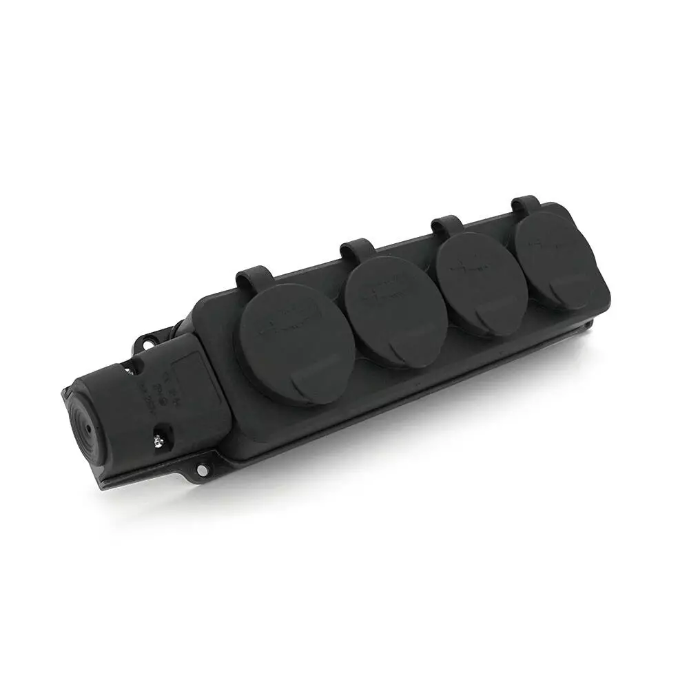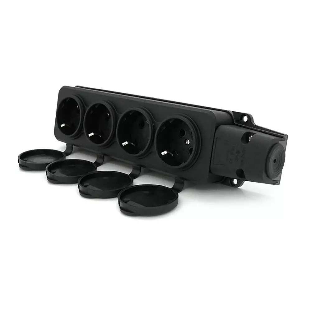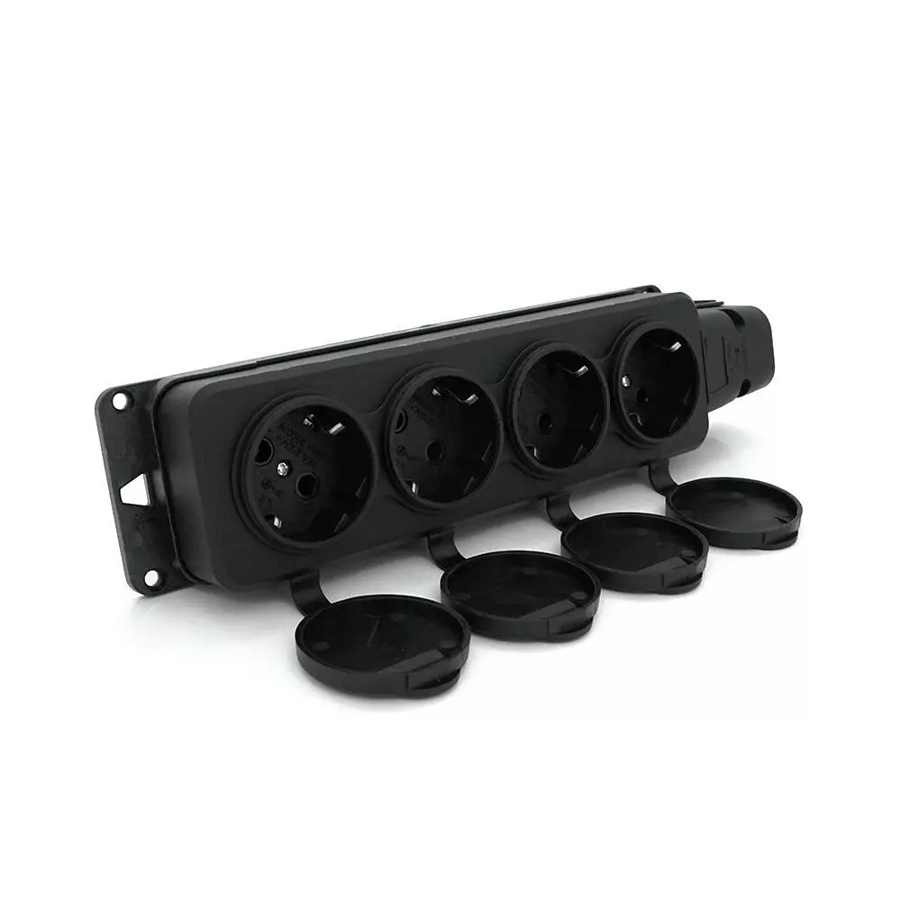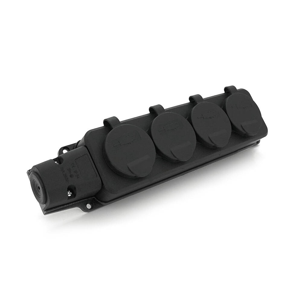 Колодка PiPo PP / SP-4/44 / 16B, 16А, 220-240В, IP44, з заглушкою, із заземленням 4 гнізда, каучук, чорний, Q10