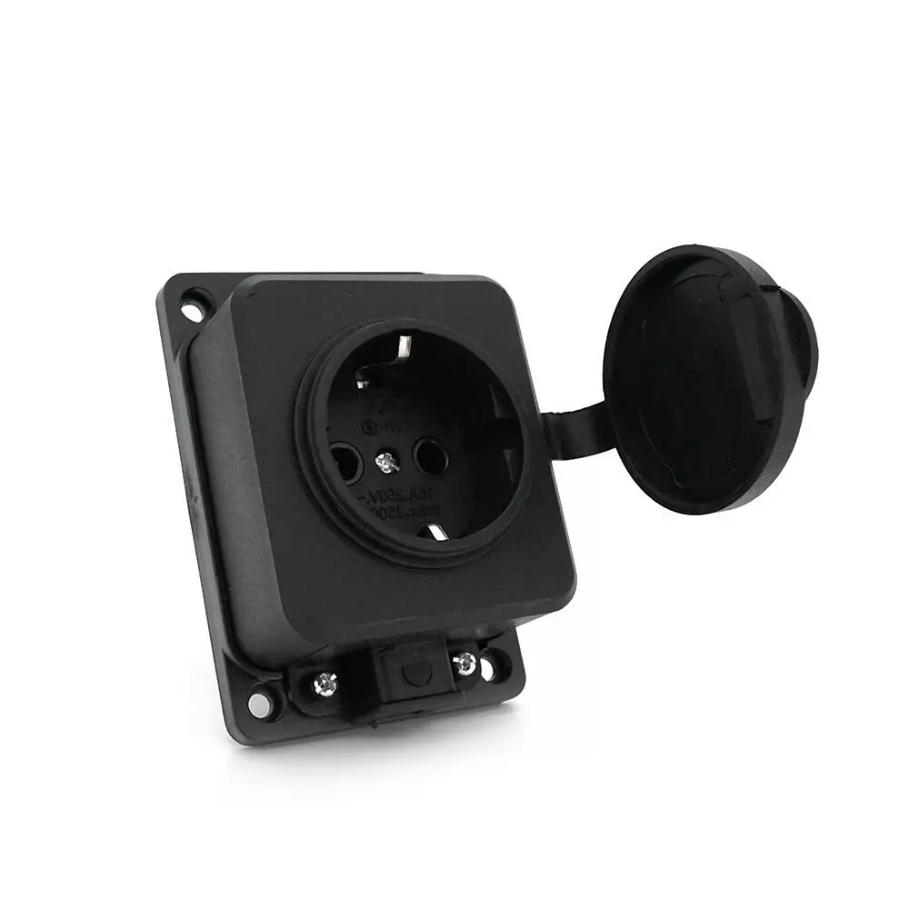 Колодка PiPo PP/SP-1/44/16B, 16А, 220-240В, IP44, з заглушкою, із заземленням 1 гніздо, каучук, чорний, Q30