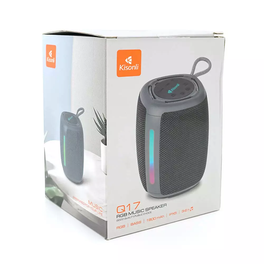 Колонка Kisonli Q17 Bluetooth 5.3, 1х8W, 1800mAh, USB/TF/TWS/FM/BT/LED, DC: 5V/1A, BOX, Camouflage, Q45
