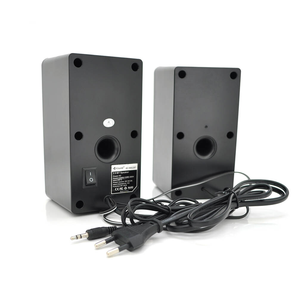 Колонки 2.0 Kisonli AС-9002BT, для ПК і ноутбука, живлення 220V + jack 3.5mm, 2x3W, 20Hz- 20KHz, з вбудованим підсилювачем, bluetooth, Black, BOX, Q30