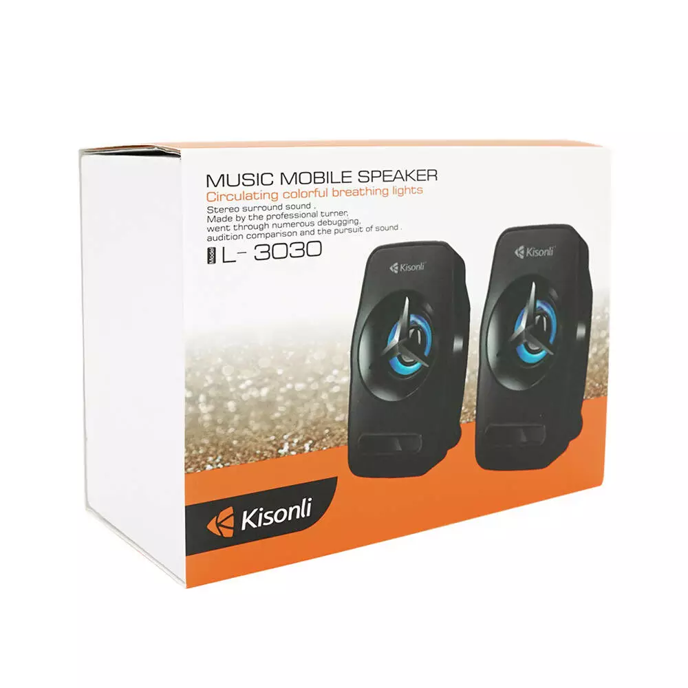 Колонки 2.0 Kisonli L-3030 для ПК та ноутбука, USB + 3.5mm, 2x3W, 20Hz-20KHz, 20X11X13mm, black
