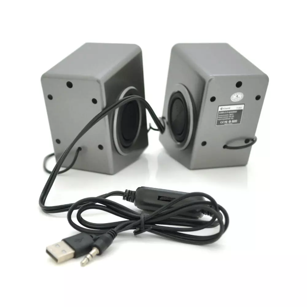 Колонки 2.0 Kisonli T-007 для ПК і ноутбука, USB + 3.5mm, 2x3W, 20Hz- 20KHz, Gray, BOX, Q40