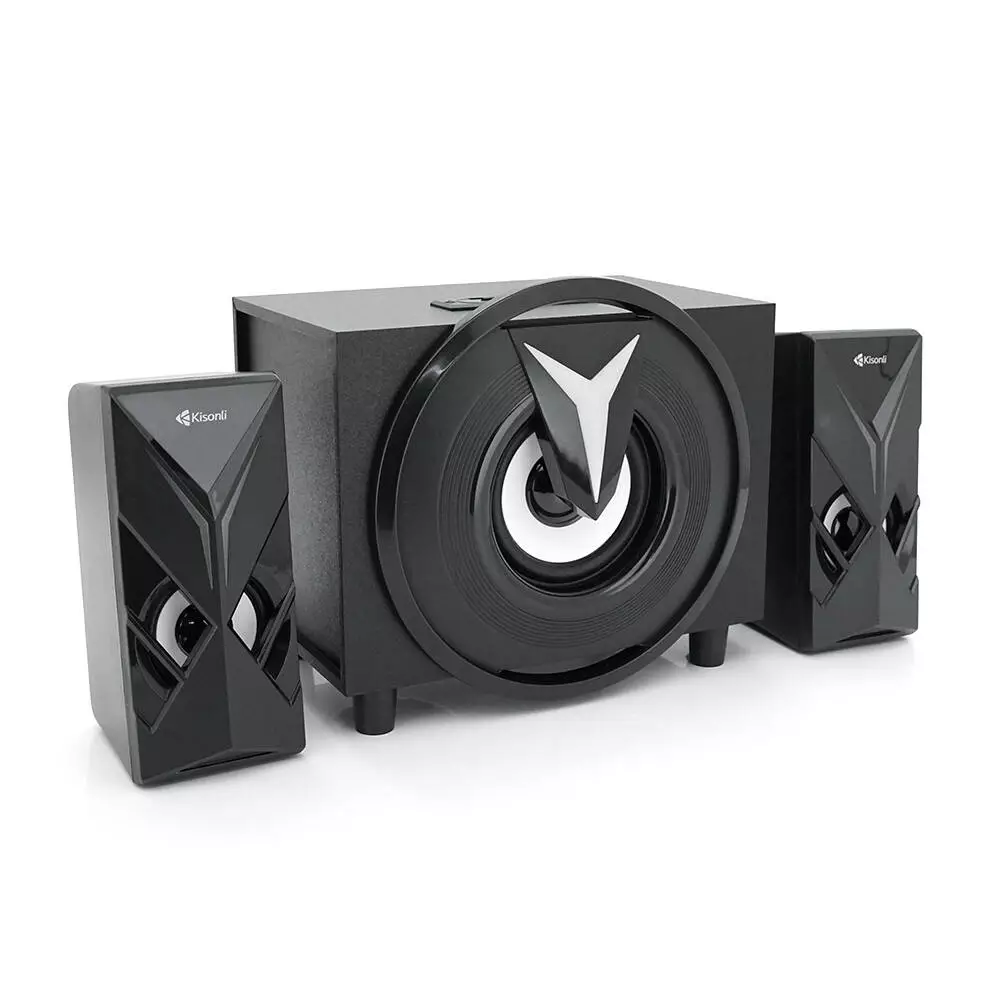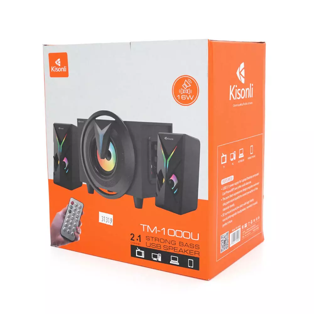 Колонки Kisonli TM-1000U є компактною акустичною системою з сабвуфером і різними функціональними можливостями, такими як USB/TF/BT/FM/AUX/LED світло. Вони мають високу потужність звуку і стильний чорний дизайн, що робить їх ідеальним вибором для прослуховування музики.