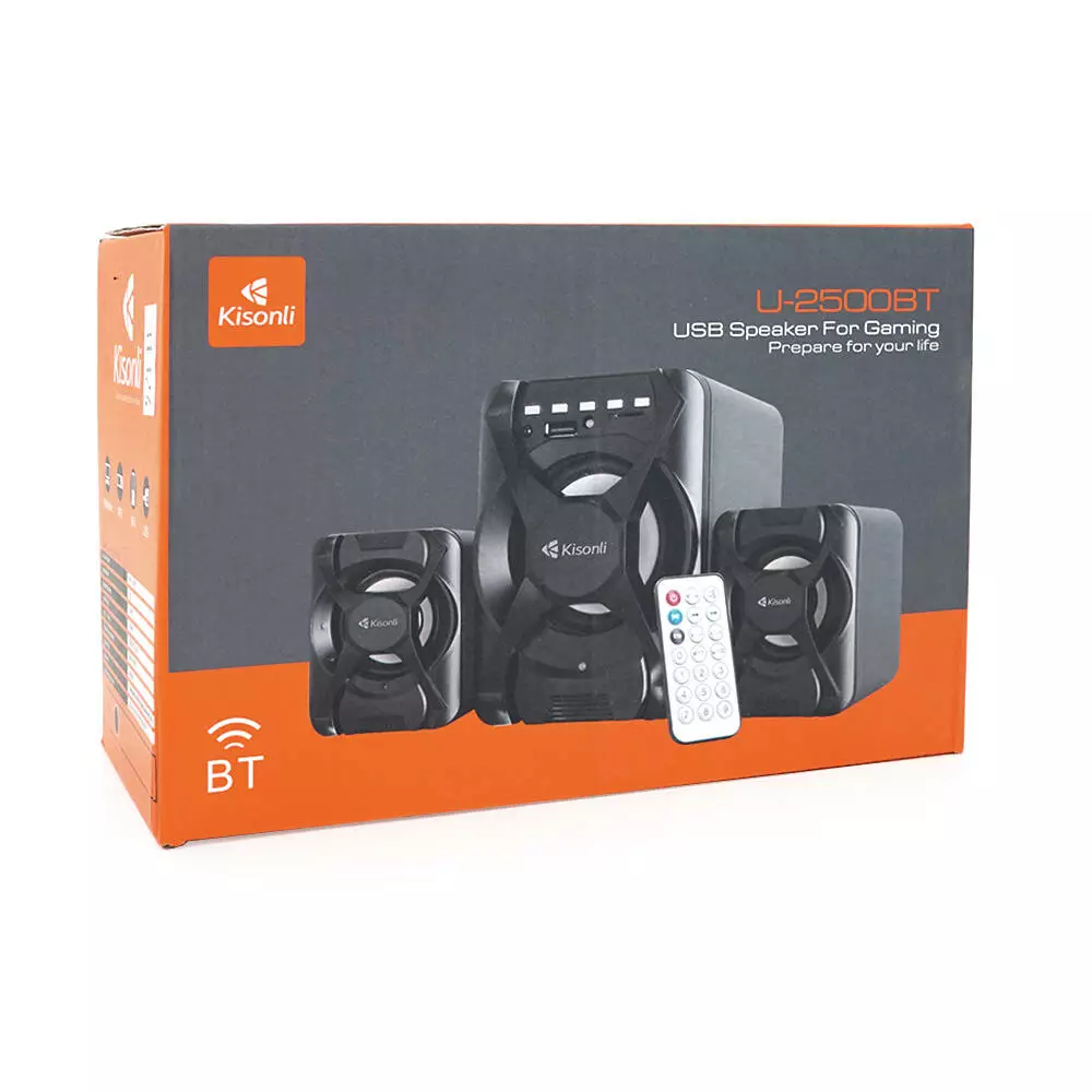 Колонки Kisonli U-2500BT, 5W+2x3W, USB/TF/BT/FM/AUX, із сабвуфером, DC: 5V, Black, BOX, Q30