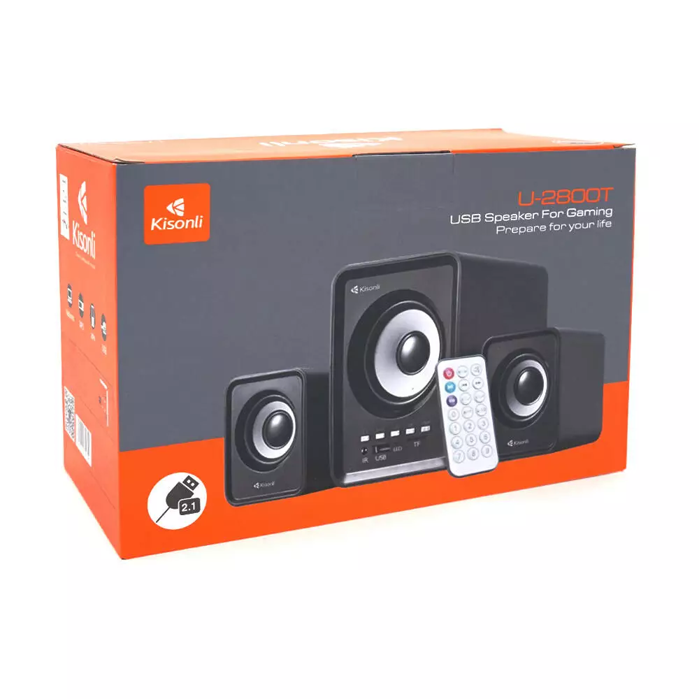 Колонки Kisonli U-2800BT, 5W+2x3W, USB/TF/BT/FM/AUX, із сабвуфером, DC: 5V, Black, BOX, Q30