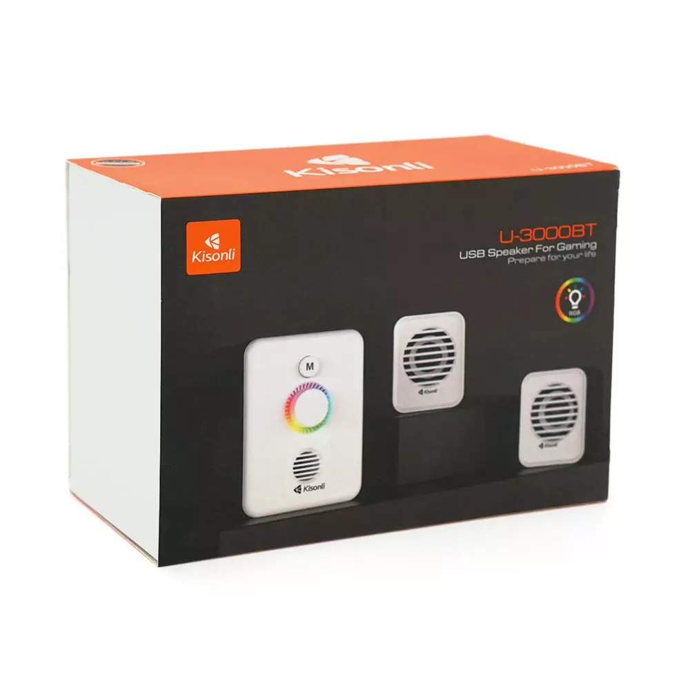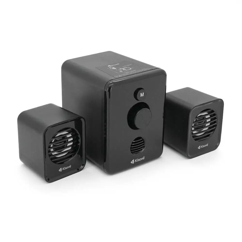 Колонки Kisonli U-3000BT, 5W+2x3W, USB/TF/BT/FM/AUX, с сабвуфером, DC: 5V, Black, BOX, Q40