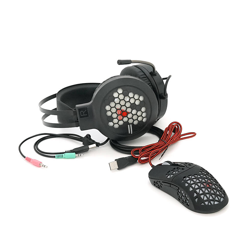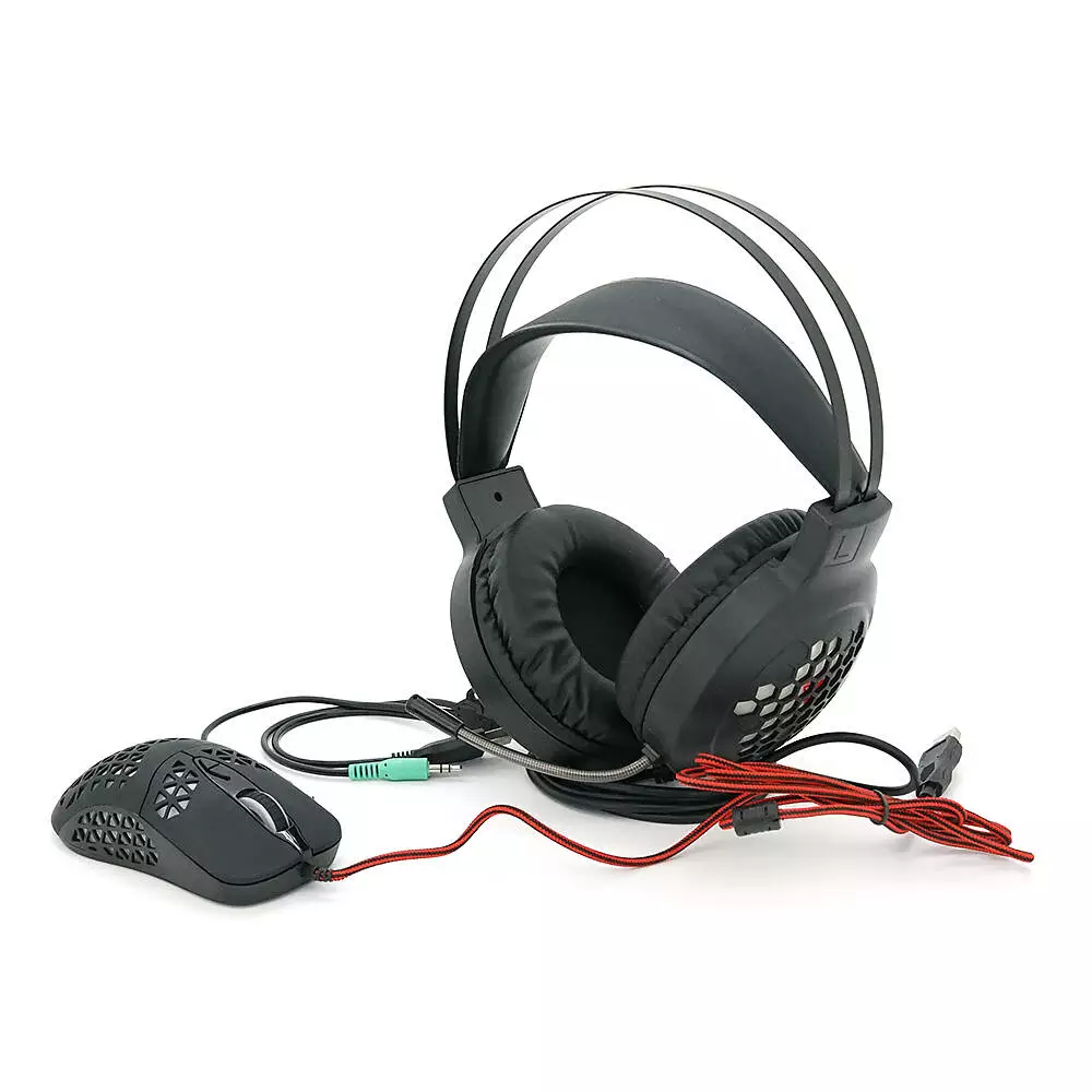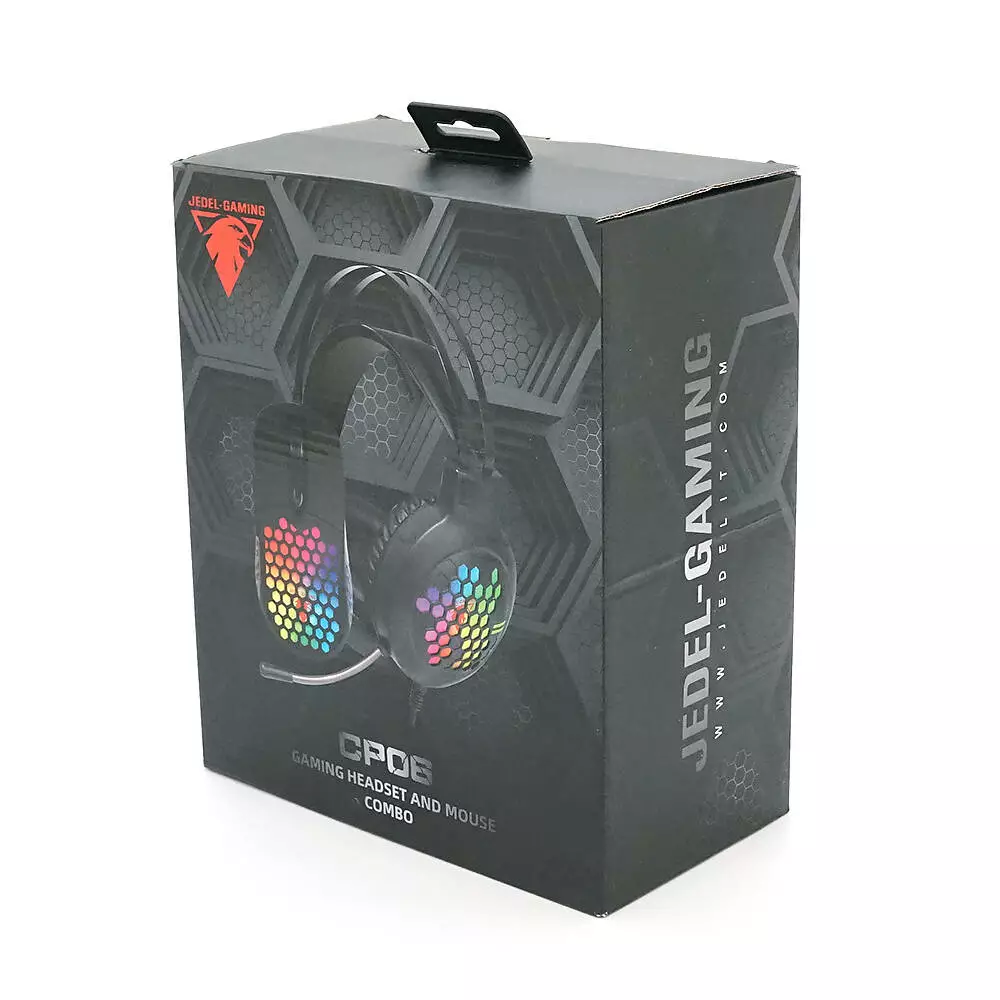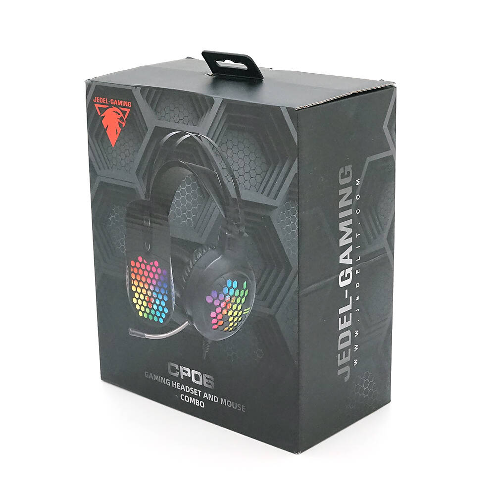Комплект миші та навушники Jedel CP06. Навушники: φ50 мм, мікрофон, RGB, кабель 2.0 м. Миша: DPI 800/1200/1600/2000, RGB, кабель 1.5м. Black. Box