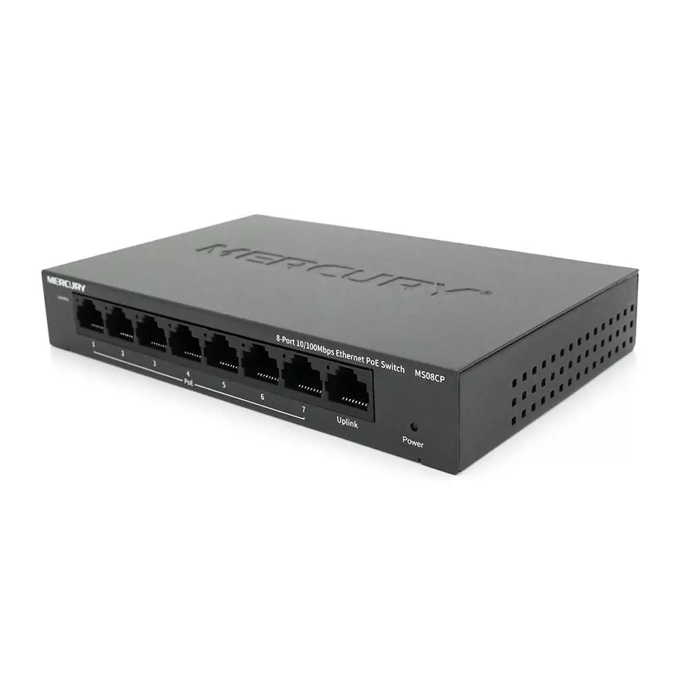 Комутатор POE Mercury MS08CP з 7 портами POE + 1 порт UP-Link 100Мбіт, БП в комплекті, Q18