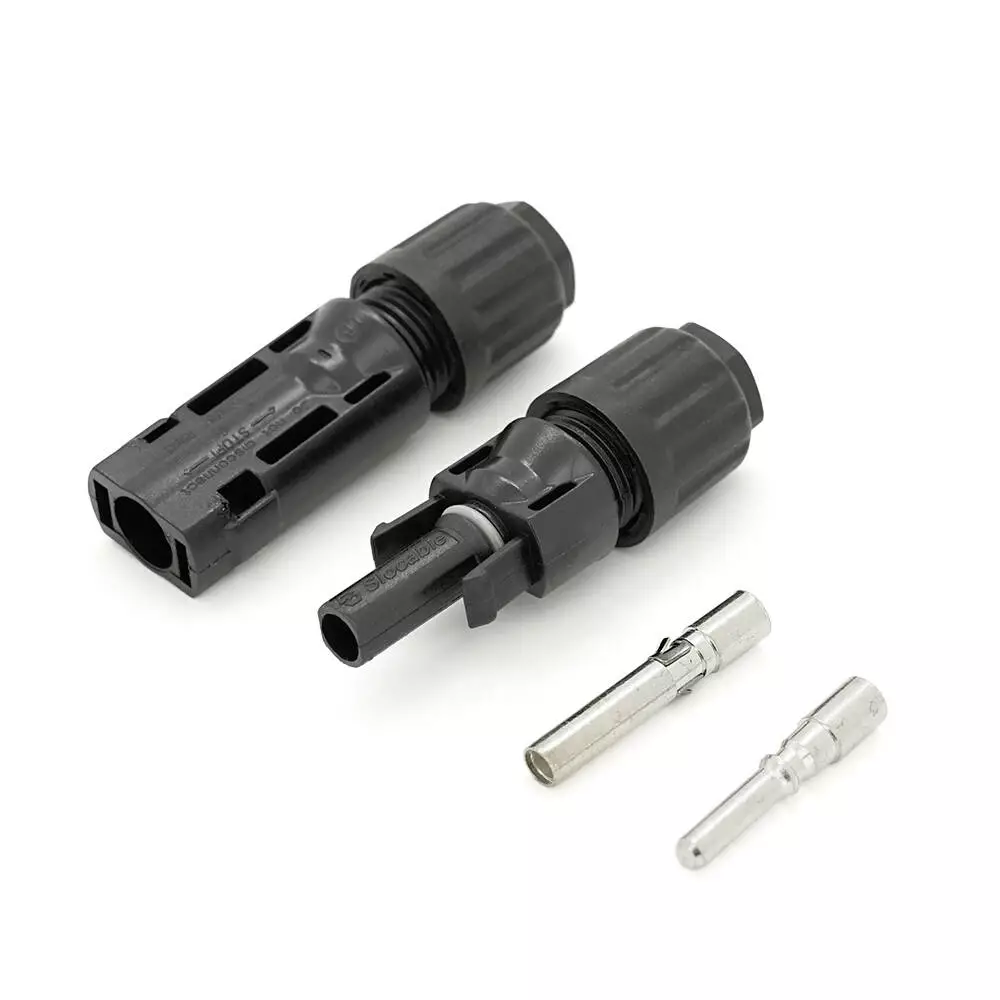 Коннектор MC4 1500V, 50A, луджений-мідний трубчастий, під перетин 4-10мм², 0.5 мОм, вогнестійкість UL94-VO, IP68, Q500, Black