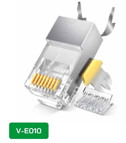 Конектор VEGGIEG V-E010 RJ-45 8P8C, Екранований двокомпонентний роз'єм, CAT7 10Gigabit Q25