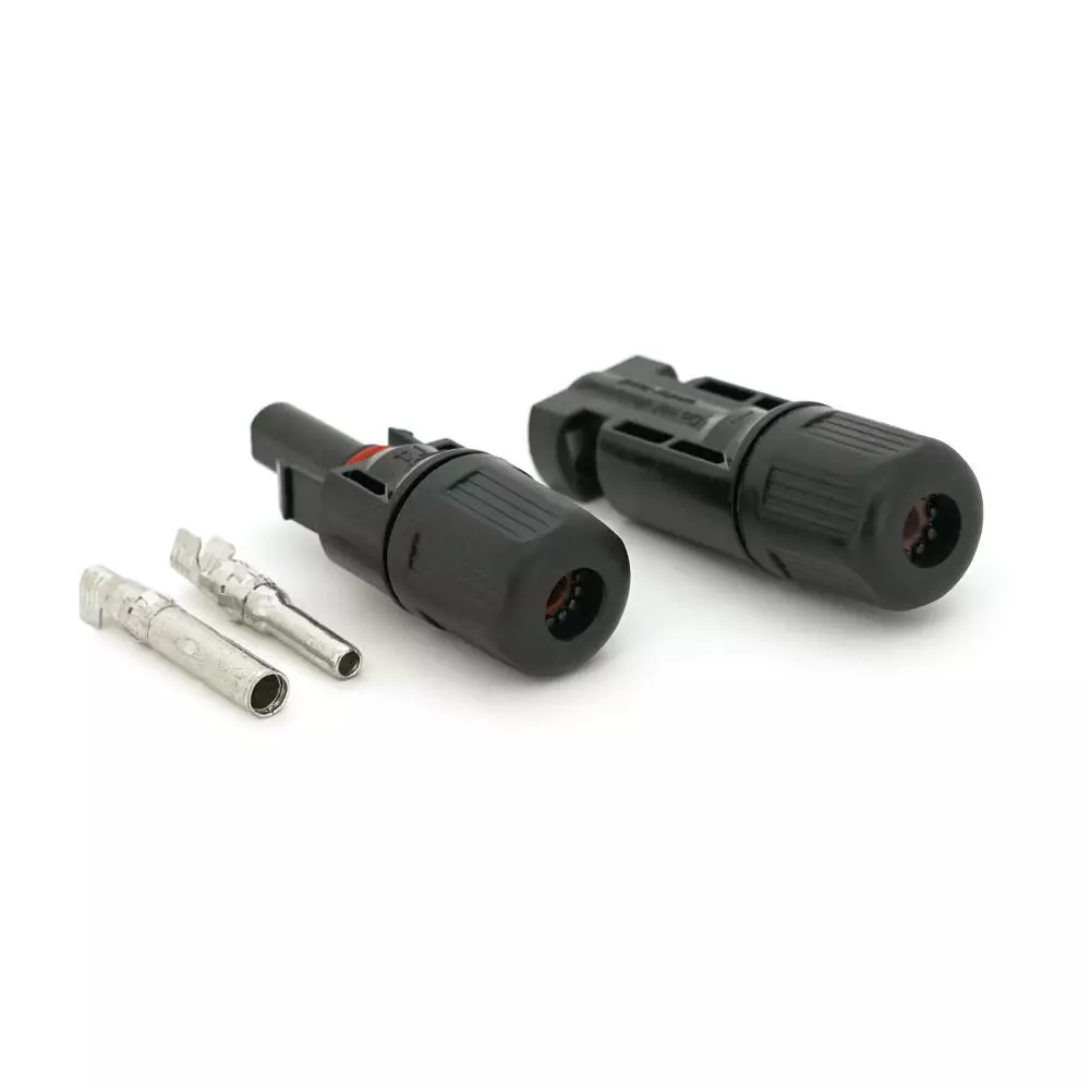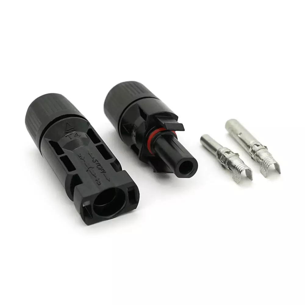 Коннектор MC4 Premium, 1000V, 30A, мідь CN під затискач, U-подібний, під перетин 2,5-6 мм², 0,5 мОм, IP67, -40 ℃ ~ 105 ℃, вогнестійкість UL94-VO, Q1000. Чорний