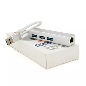Контролер USB 3.0 до Ethernet VEGGIEG U3-3U-S - Сетевой адаптер 10 / 100Mbps з проводом RTL-8152B + FE2.2S + 3 порта USB3.0, White, Metal, Blister-Box