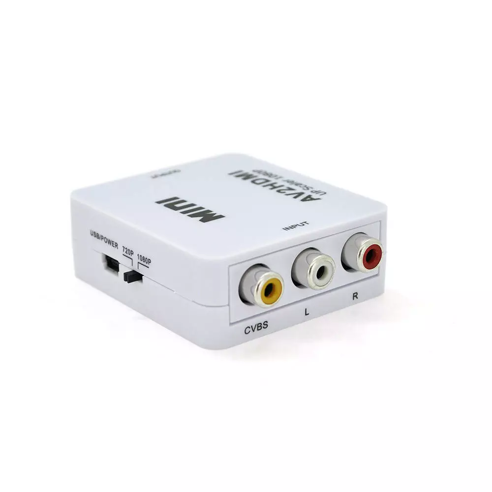 Input ports:1xRCA (Yellow,White,Red);Output ports:1xHDMI;Size:66*55*20mm, weight: 42g,з мінімальним USB-насосом; PAL/M,PAL/N.