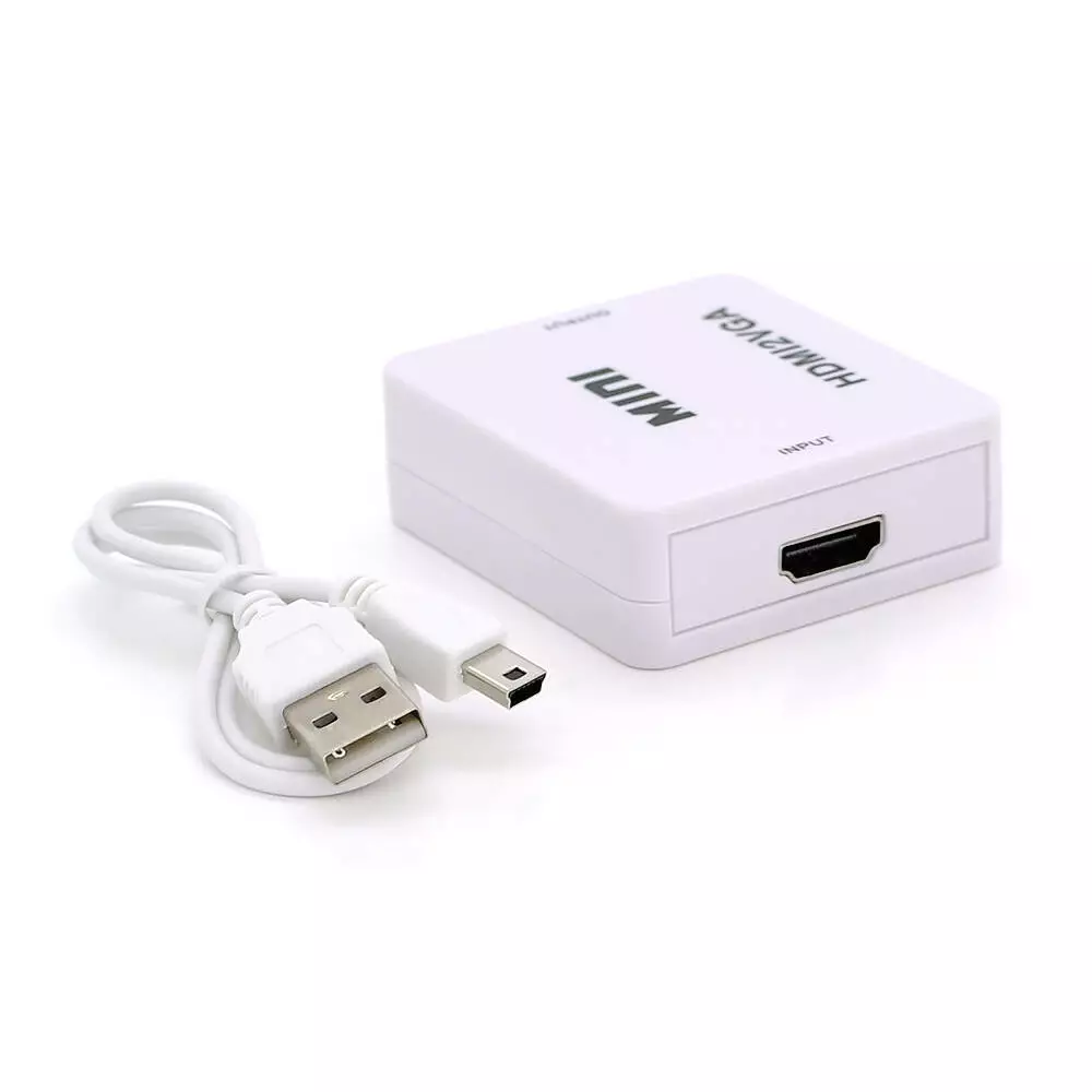Конвертер Mini, HDMI to VGA, ВХІД HDMI (мама) на ВИХІД VGA (мама), 720P / 1080P, White, BOX