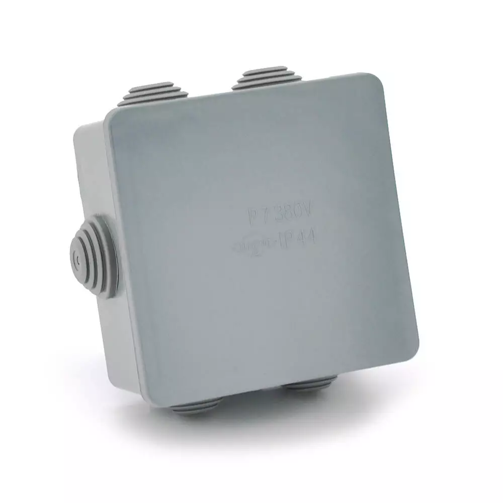 Коробка розподільна зовнішня PIPO Premium Р70 95х95х50мм; IP55; пластик; (РР) 6 гермовводів; сіра; Q24