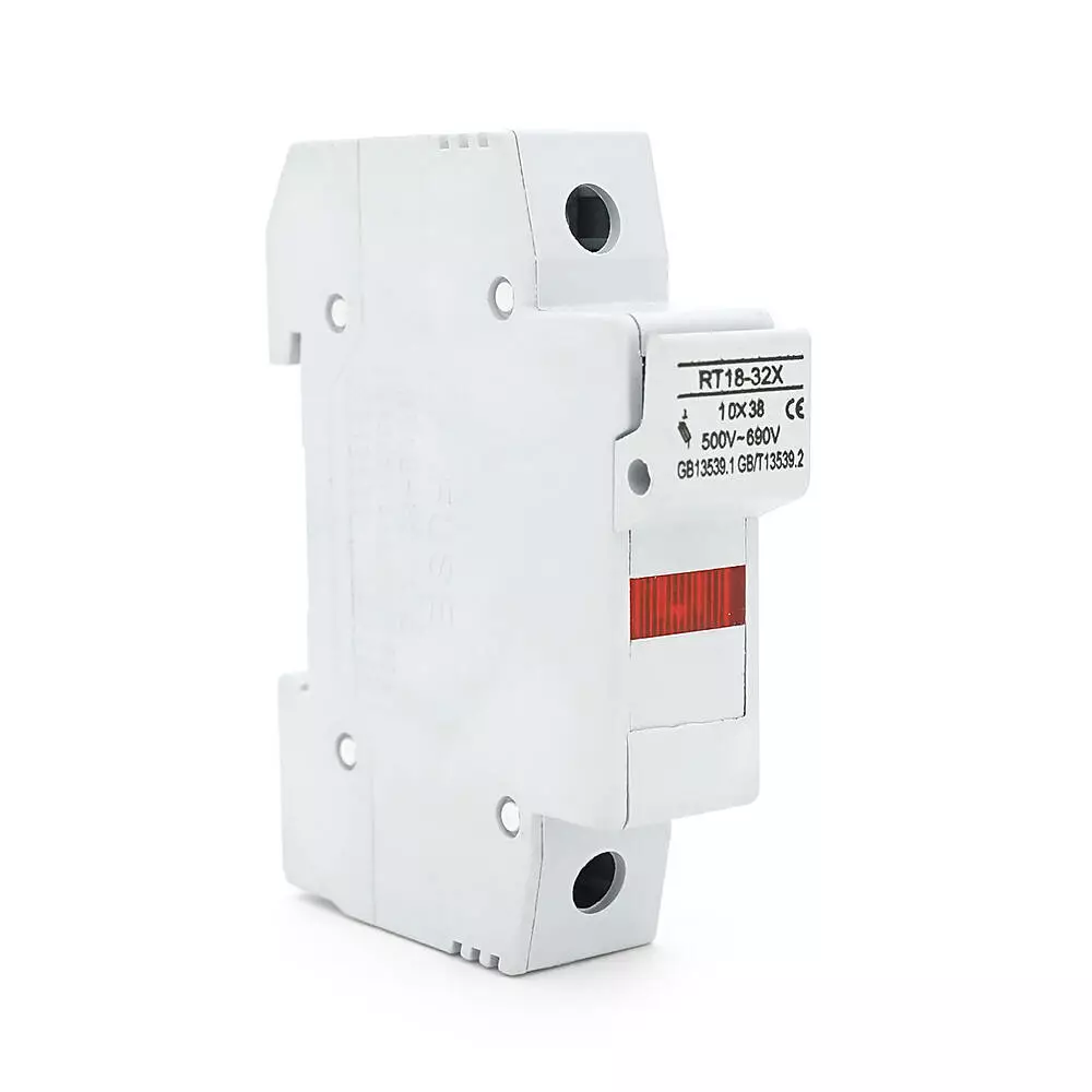 Корпус під плавкий запобіжник YRO RT18-32/1P, 32A, 500/690V, зі світловим індикатором, DIN, запобіжник під 10*38mm, контакти латунь. 78*17.6mm