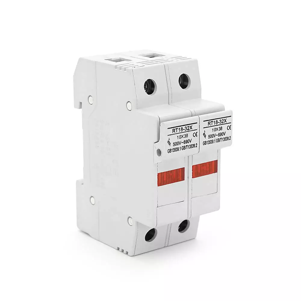 Корпус під плавкий запобіжник YRO RT18-32/2P, 32A, 500/690V, зі світловим індикатором, DIN, запобіжник під 10*38mm, контакти сталь.78*35.2mm