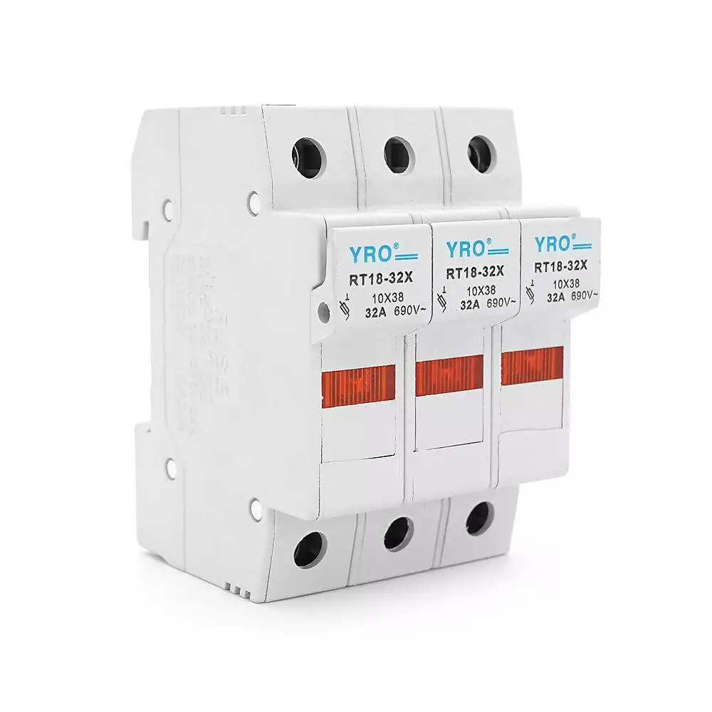 Корпус під плавкий запобіжник YRO RT18-32/3P, 32A, 500/690V, зі світловим індикатором, DIN, під запобіжник 10*38mm,контакти мідь 78*52.8mm