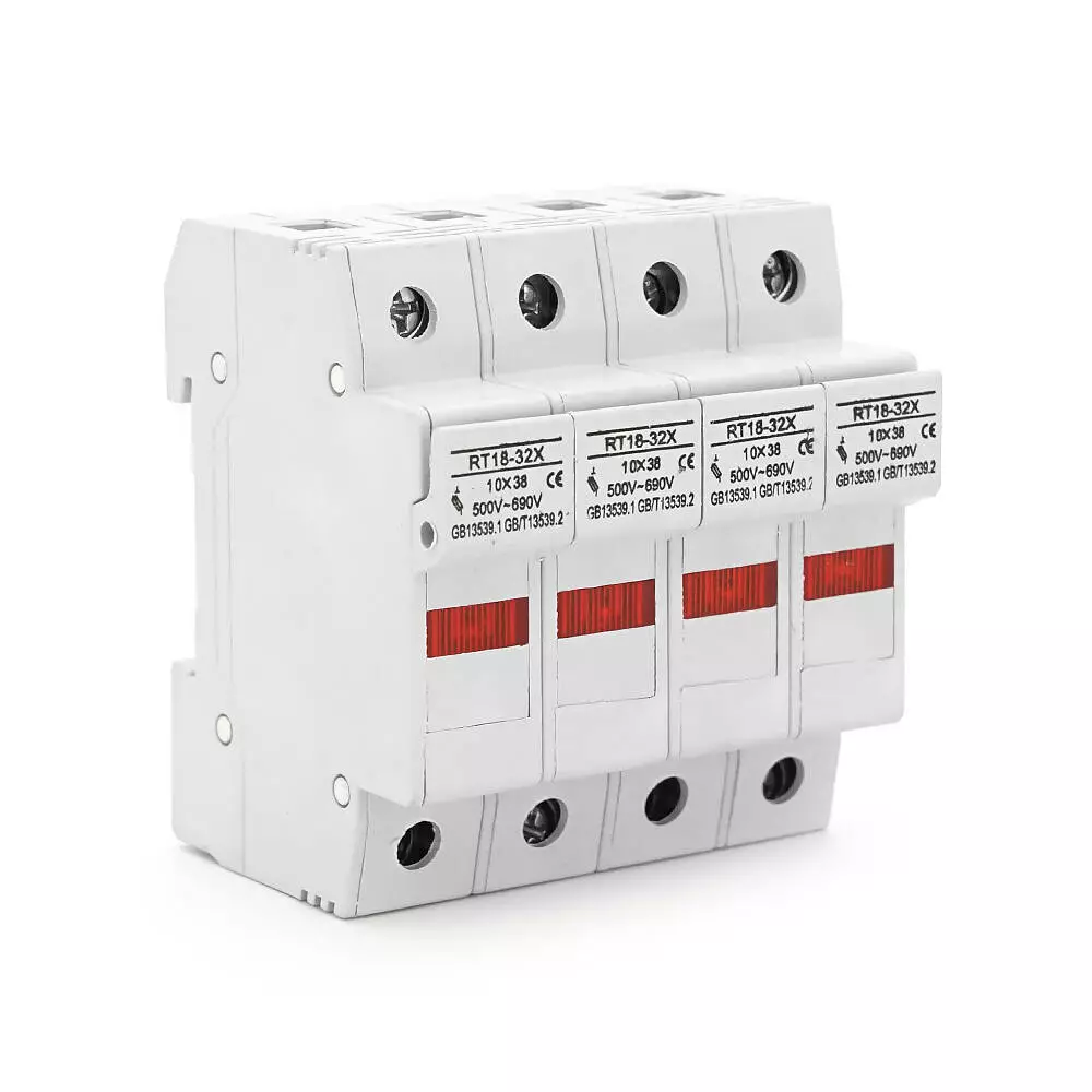 Корпус під плавкий запобіжник YRO RT18-32/4P, 32A, 500/690V, зі світловим індикатором, DIN, під запобіжник 10*38mm, контакти латунь.78*70.4mm