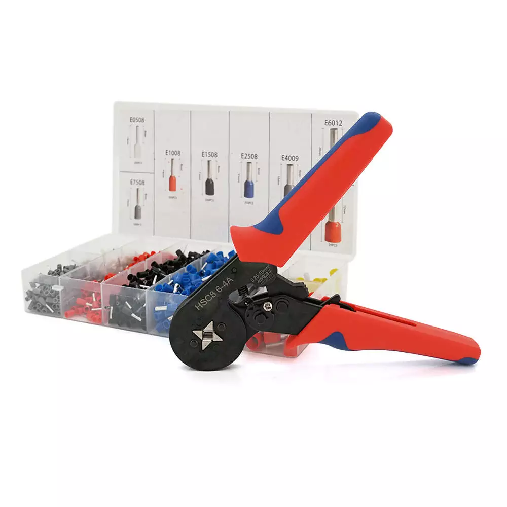 Крімпер HCS8 6-4 для обтиску кабельного накінечника, red + набір кабельних наконечників (E0508-360шт, E1508-180шт, E2508-150шт, E1008-240шт, E4009-90шт)