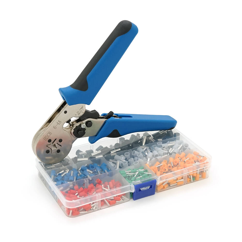 Кримпер HCS8 6-4A для обтиску кабельного наконечника, Black-blue, набір кабельних наконечників (VE0508, VE7508, VE1008, VE1508, VE2508, VE4009, VE6102)