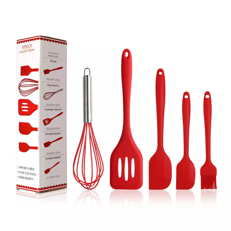 Кухонний набір 5 предметів, віночок, 3 лопатки, пензель, Red