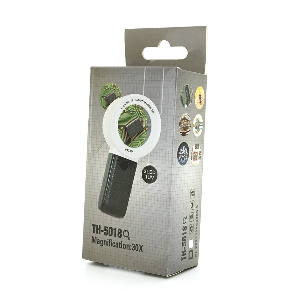 Лупа TH-5018 з підсвічуванням - чудовий інструмент для збільшення дрібних деталей та роботи з дрібними об'єктами. Її діаметр становить 40 мм, що забезпечує гарне охоплення об'єкта зі збільшенням. Збільшення в 30 разів уможливлює розгляд найдрібніших деталей.
