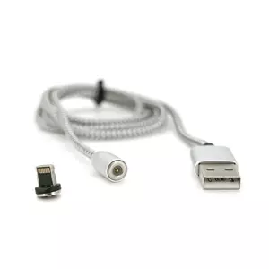 Магнітний кабель Ninja USB 2.0 / Lighting, 1m, 2А, індикатор заряду, тканинна оплетка, броньований, знімач, Silver, Blister-Box