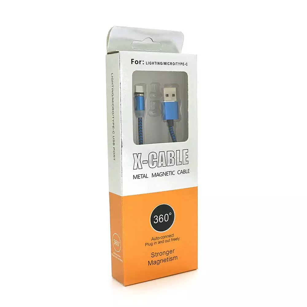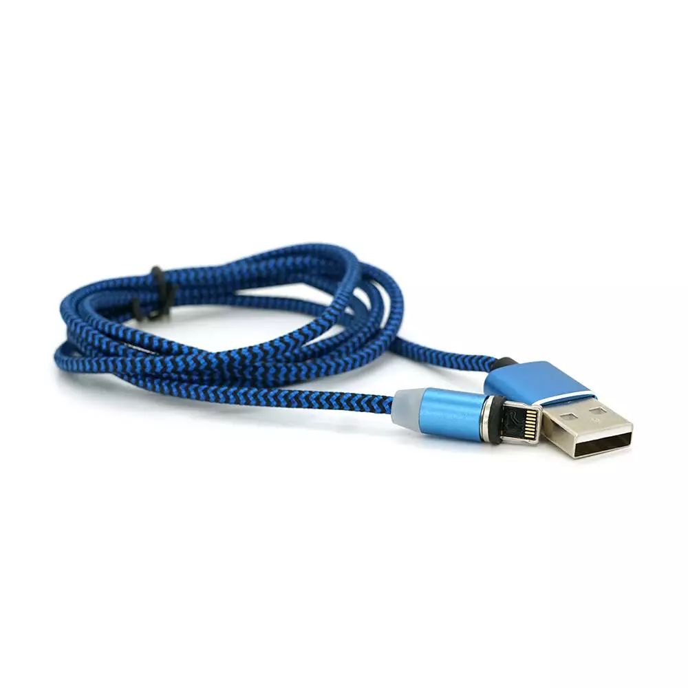 Магнітний кабель Ninja USB 2.0/Lighting, 1m, 2А, індикатор заряду, тканинне обплетення, броньований, знімач, Blue, Blister-Box