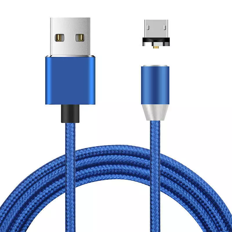 Магнітний кабель Ninja USB 2.0/Micro, 1m, 2А, індикатор заряду, тканинне обплетення, броньований, знімач, Blue, Blister-Box
