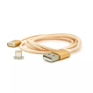 Магнітний кабель USB 2.0/Lighting, 1m, 2А, індикатор заряду, обплетення тканини, знімач, Gold, Blister ( під наконечник 1938 )