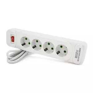 Мережевий фільтр F24, 4 розетки EU, кнопка включення з індикатором, 2 м, 3х0,75мм, 2500W, White, Box