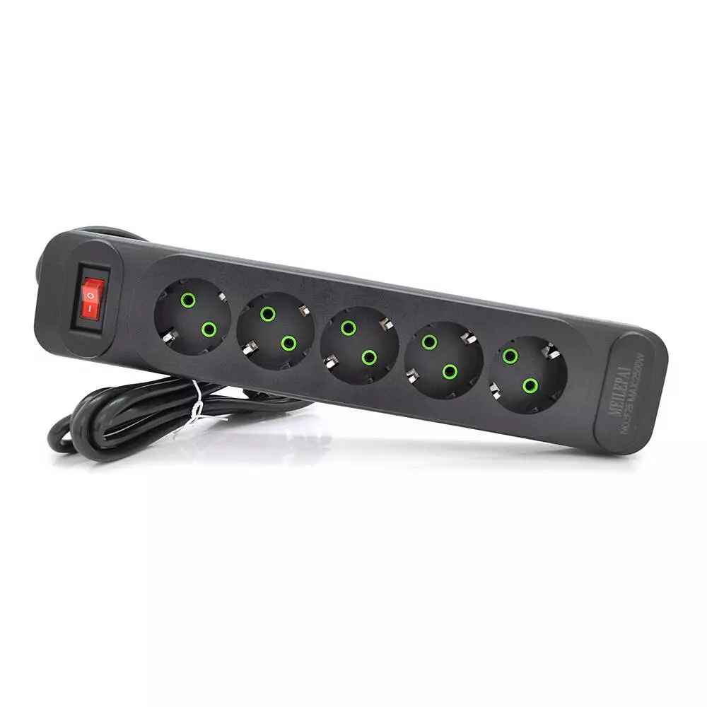 Мережевий фільтр F25, 5 розеток EU, кнопка включення з індикатором, 2 м, 3х0,75 мм, 2500W, Black, Box