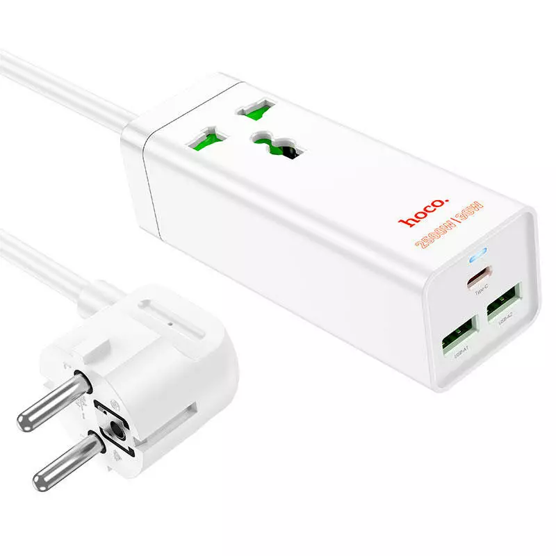 Мережевий фільтр HOCO AC9A на 1 розетку + 2 USB+USB-C, 30W, 220В, кабель 1,5м, White, Box